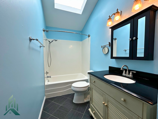 The loft-style bedroom features large closets and a top-of-the-line mini split system providing efficient heating and air conditioning year round. A skylight and vaulted ceilings bring in beautiful natural light to the entire space.